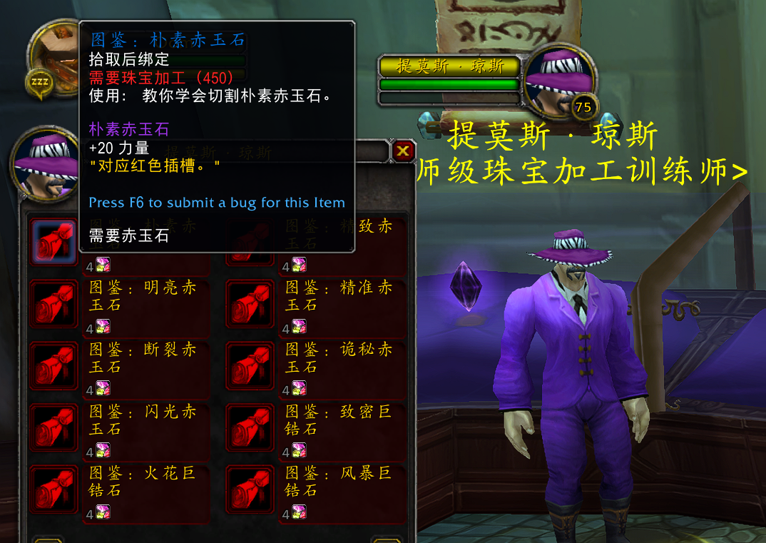 紫色宝石配方只能通过达拉然的珠宝加工训练师进行兑换,在P3阶段开启后,紫色宝石的加工图纸全部放出,仅需4个达拉然珠宝匠硬币即可兑换一张。