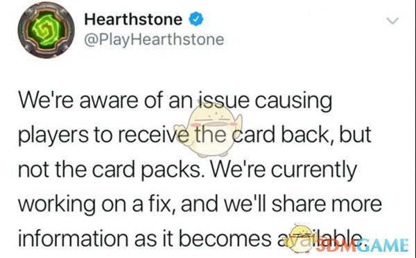 炉石传说暴雪嘉年华奖励已经发放,但是在发放过程中却出现了一些问题,很多玩家只收到了卡背,并没有收到卡包。对此官方为大家带来了补偿,下面就让我们一起来看看吧。