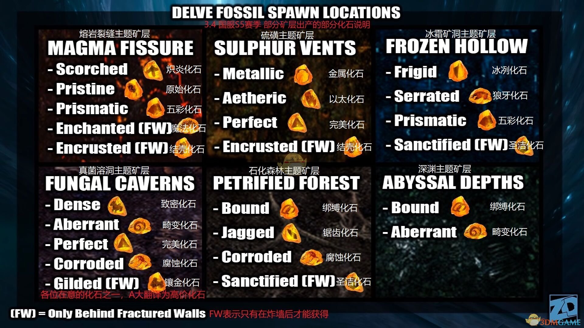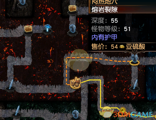 总结:在矿区完成一条有破碎的墙的通道,破碎的墙不进行炸毁,重新进入通道的起点的那一刻,矿区资源会刷新,因为破碎的墙数量是固定的,没有被炸毁,就会导致破碎墙重置时周围的黑暗物资宝箱化石也会跟着进行重置,所以我们可以每次只拿化石,宝箱,不炸毁破碎的墙。无限重置起点,就能够无限获得该区域的化石,宝箱了。任何BD都可以轻松获得无限化石,且,不消耗硫磺。