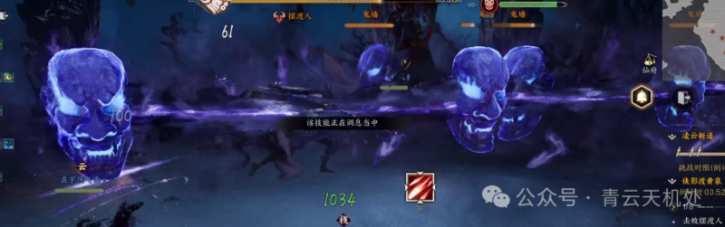 ②鬼墙:生成横向移动和纵向移动的两排鬼墙,鬼墙经过的地区会有黑雾,持续掉血