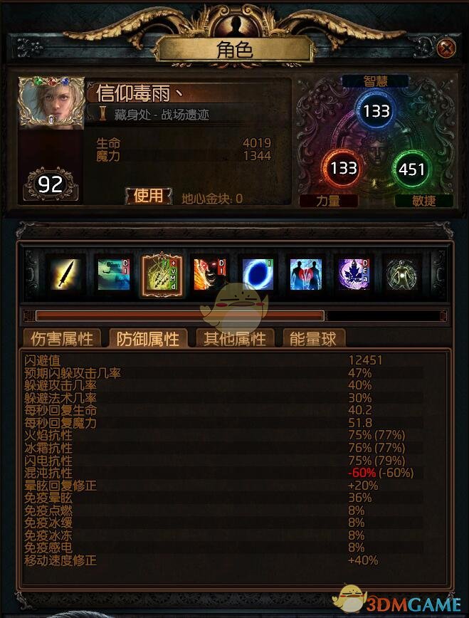 92级天赋,选用了两颗求知的热情,其实没什么用,(不用的话可以去掉狂怒球/心眼的加点找生存/抗性或者直接替换珠宝补抗性)