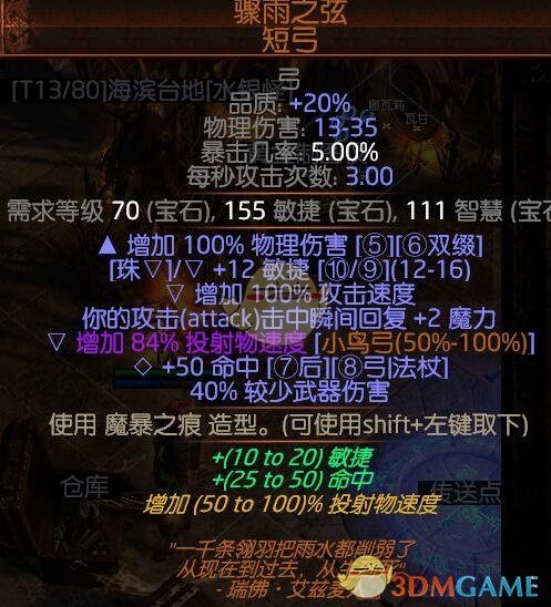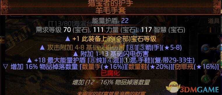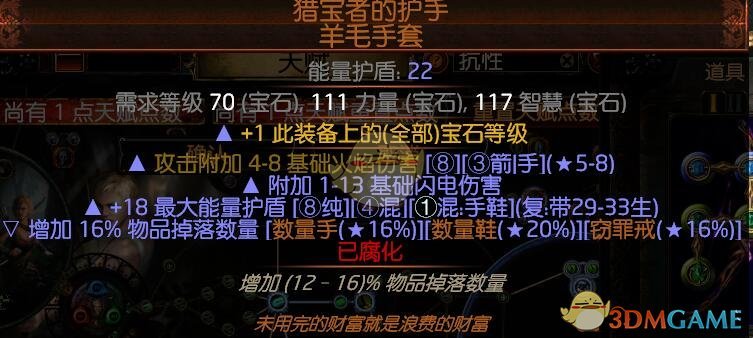 衣服:5L 毒雨-虚空操纵-幻影射手-邪恶投掷-急速腐化(有条件6L可以带个赋予,凋零之触,或者稀有度增幅等等都可以)