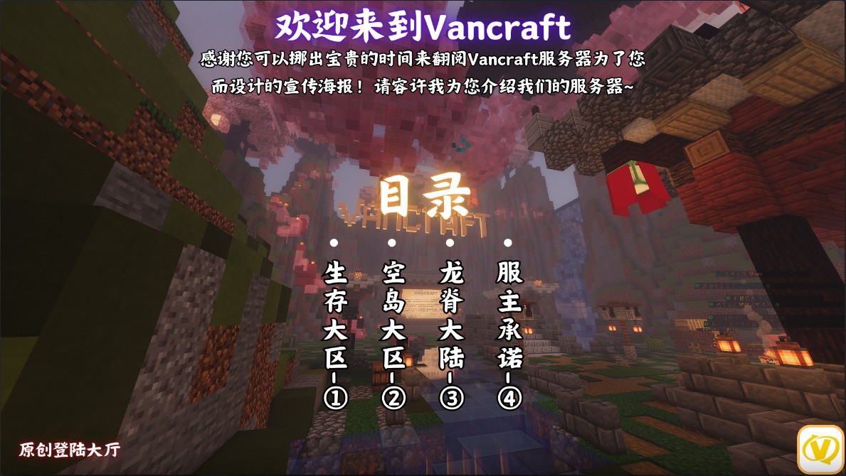 我的世界Vancraft服务器有着生存,轻RPG副本,纯净空岛的玩法,并且是原创的内容,非常的吸引人,那么下面就为大家带来了Vancr.aft服务器IP地址