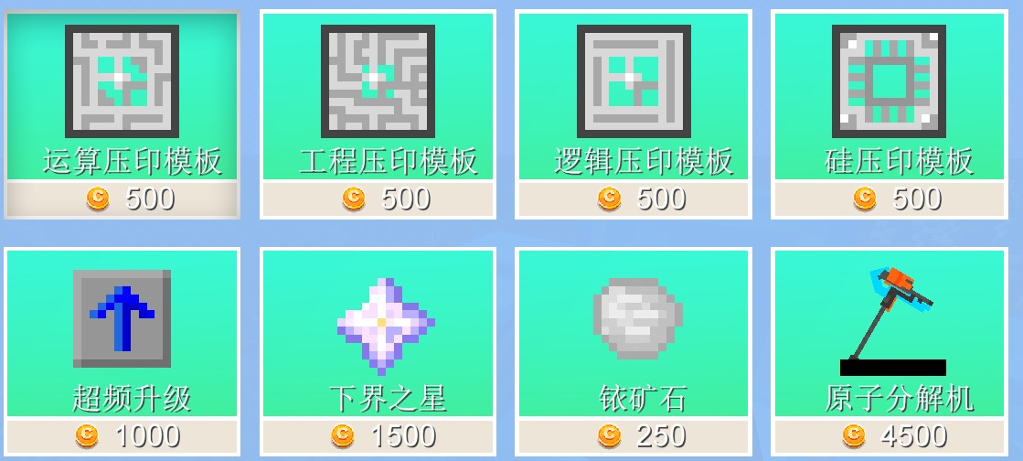 有:工业 高级太阳能 重力装甲 更多电力装置 应用能源 更多存储单元