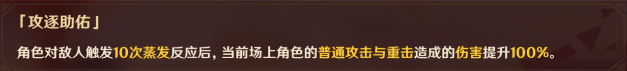 触发10次蒸发反应后,获得100%的普攻和重击伤害提升