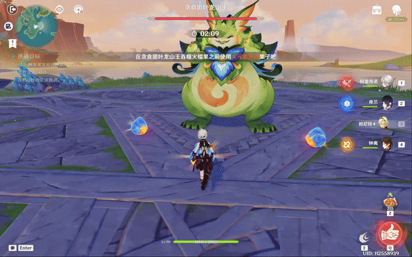 本次攻略的关键就是使用火元素攻击点燃全部火榴果,所以可以带点AOE火角色,不过火榴果本身有嘲讽系数,玩家攻击会锁火榴果,所以不用担心全打在boss身上点燃不了火榴果的情况啦