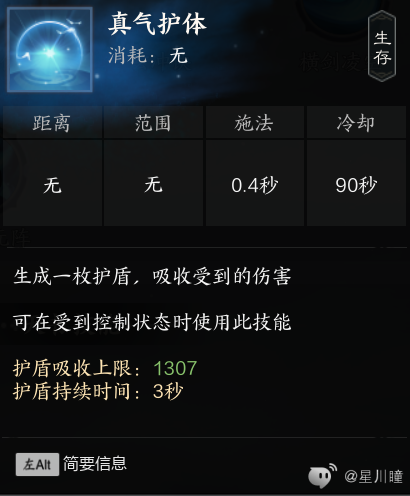 真气护体:持续3s的盾,cd90s