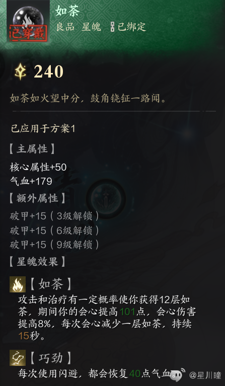 每使用一次贯虹,获得一层小buff为破星