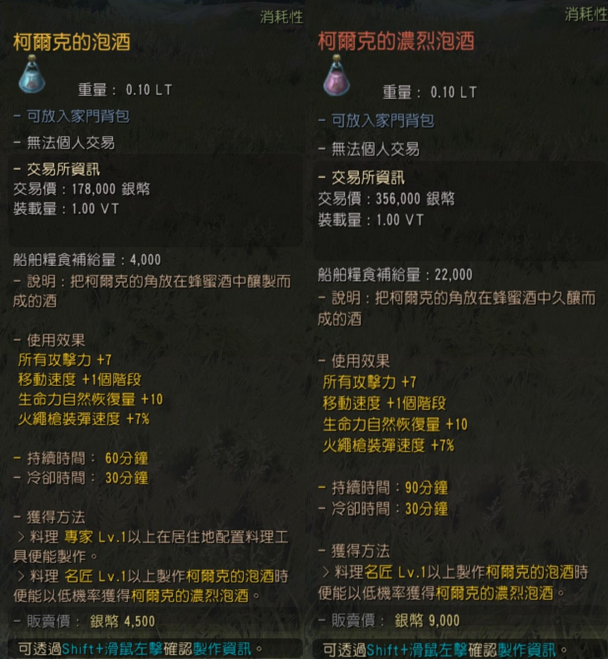 跟猎人的沙拉一样,柯尔克的泡酒在狩猎中也有很大的帮助。
