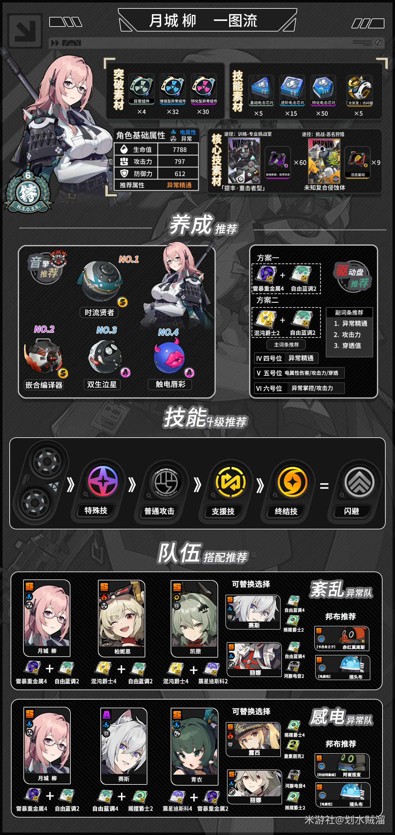 月城柳自身的机制上还是比较不错的,在比较注意操作的情况下,保障月城特殊技的极性紊乱在自身触发感电时刚好触发,最大化极性紊乱的伤害前提下,队友选择上的差距会进一步缩小,因此在对比较喜欢操作以及想要组件异常紊乱体系的小伙伴还是比较推荐的。