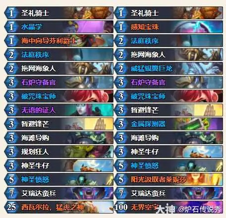 【卡组速递★狂野新王元气骑】 基本四五费解决战斗,有老哥胜率70%上传说! 用神圣牛仔和海滩导购减费,打内战要记得带破咒珠宝师和暂避锋芒,其他卡都是围绕定向抽神圣愤怒和法庭秩序! 无界在手不要慌,用水晶学抽芬利翻底,为了提高容错,带上老虎,感知宝珠也是为了防止鬼抽!