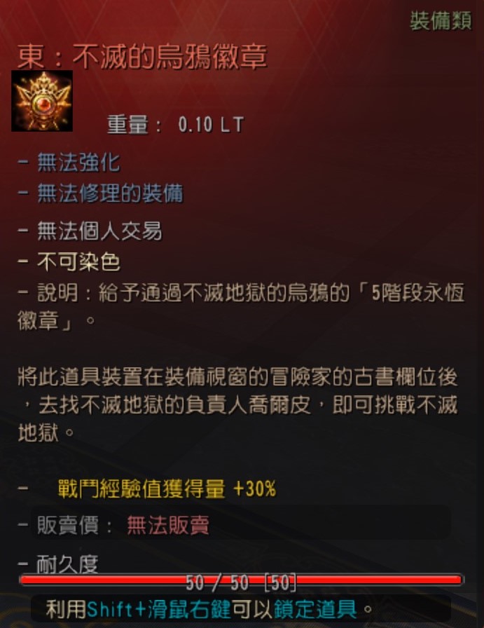 以及家门奖励【不灭的乌鸦徽章】,透过每日挑战不灭地狱累积乌鸦的黑色宝玉可以将徽章升级至东 : 不灭的乌鸦徽章(战斗经验值获得量 +30%)