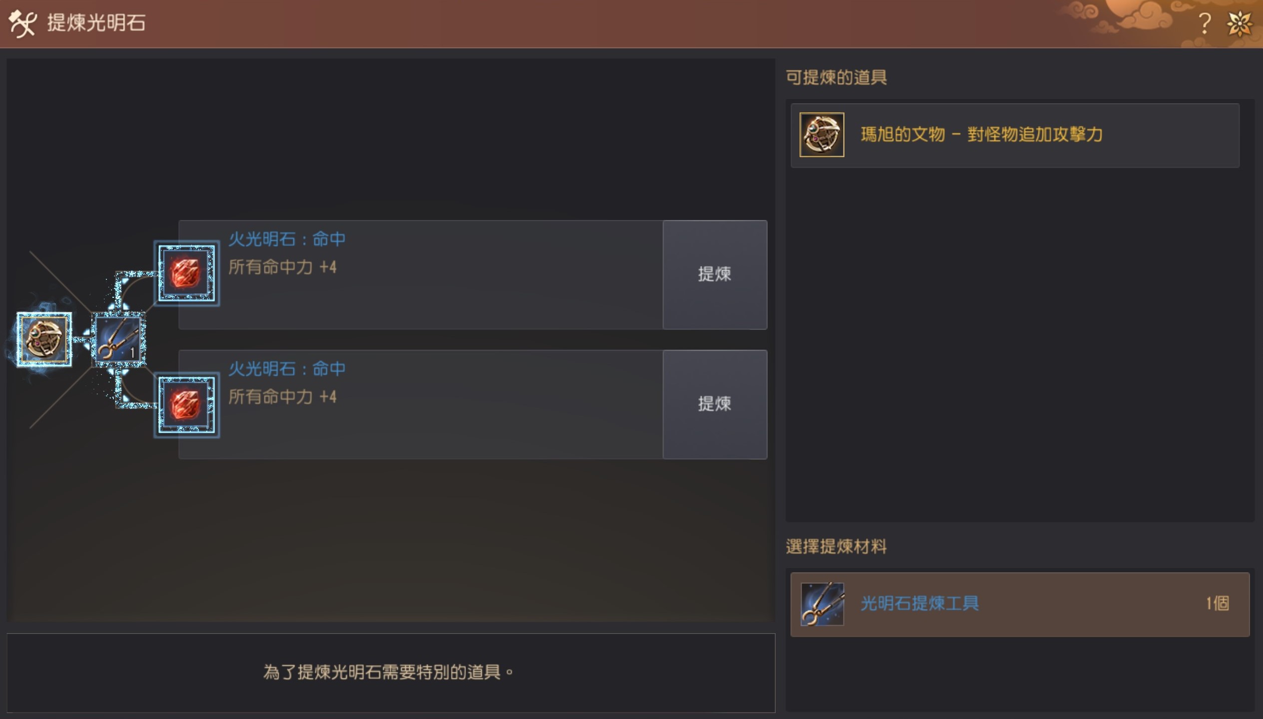2. 选好你准备用来“榨取”光明石的提炼材料(别问我啥材料,我也不知道!自己研究去!)。