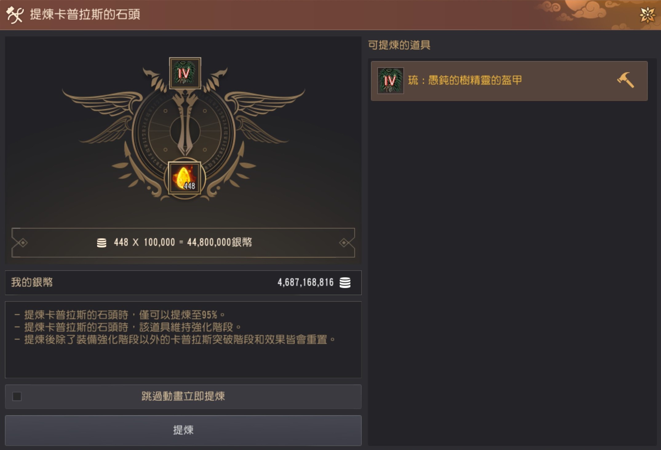 冒险家可以从已进行过卡普拉斯突破的装备中提炼卡普拉斯的石头。