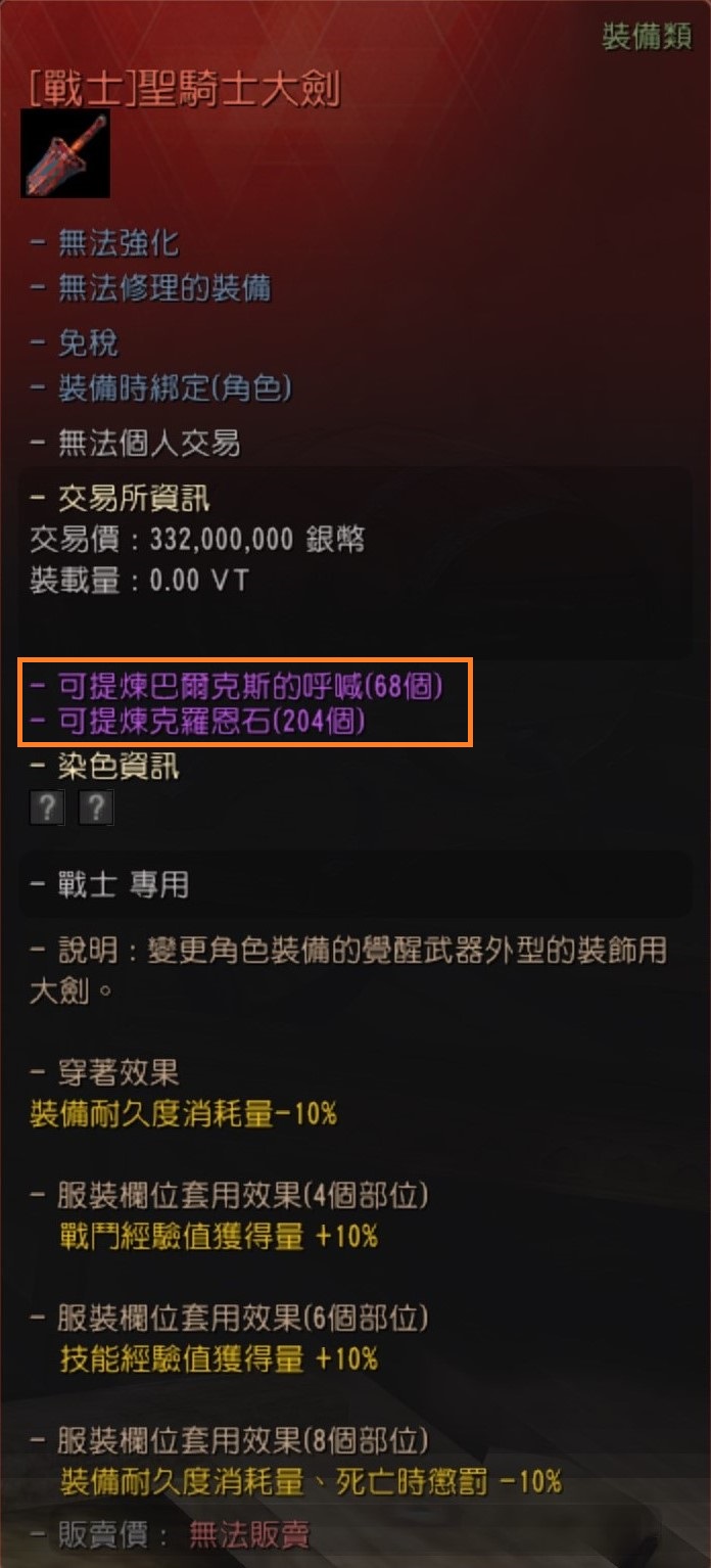 想知道一件时装能榨出多少“巴尔克斯的呼喊”或“克罗恩石”?别瞎猜,看看时装的道具说明就一清二楚啦!