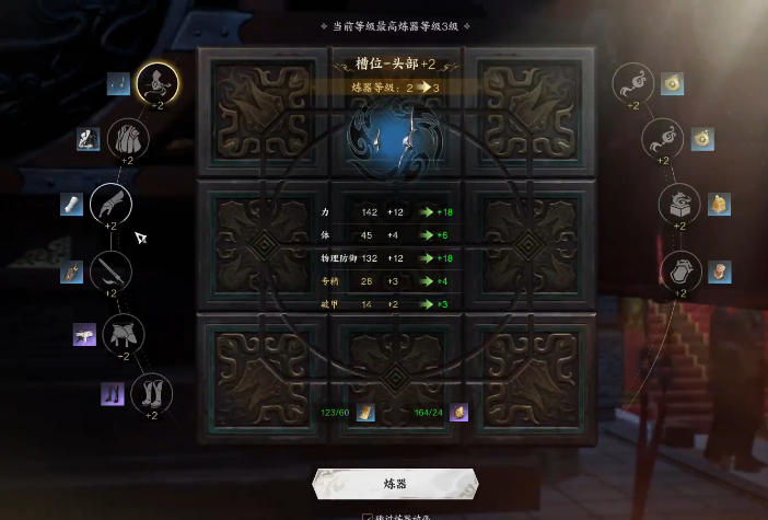 炼器: 找到炼器师,消耗炼器符和天柱石,就能提升装备栏位的属性,增强战斗力。炼器符可以用银两买,天柱石可以在佛莲玉商店买。角色等级越高,可炼器的等级越高。而且炼器必定成功,简直是良心设定!