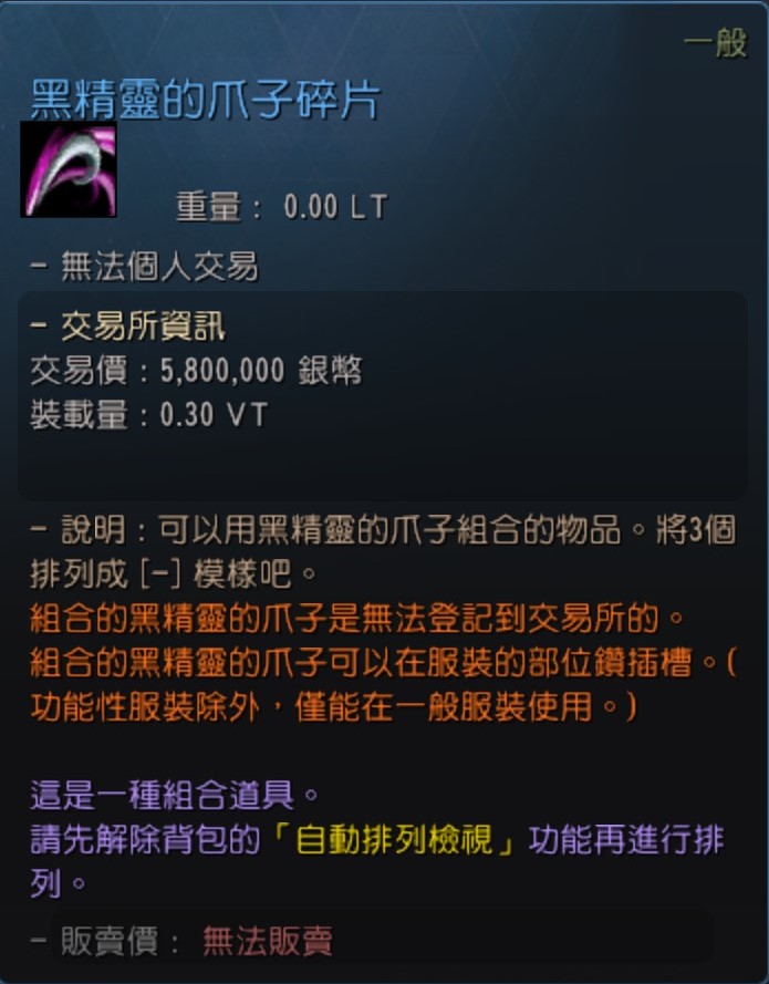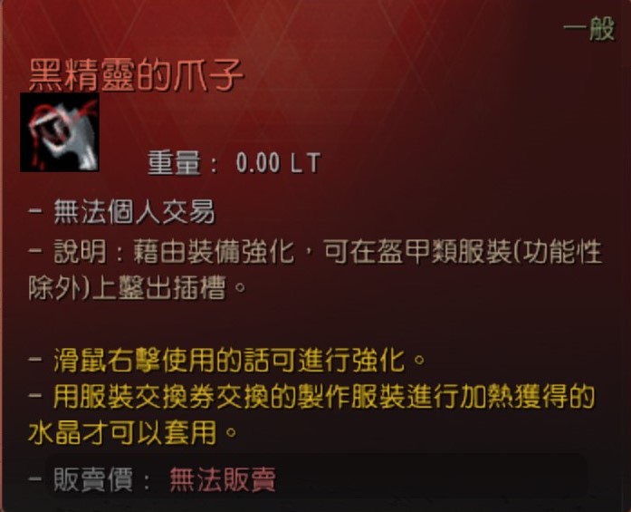 ▲ 注意啦!自己辛辛苦苦合成的爪子,可是非卖品哦!不能卖给NPC,也不能在交易所里交易,只能自己留着用了!所以,好好珍惜你的劳动成果吧!