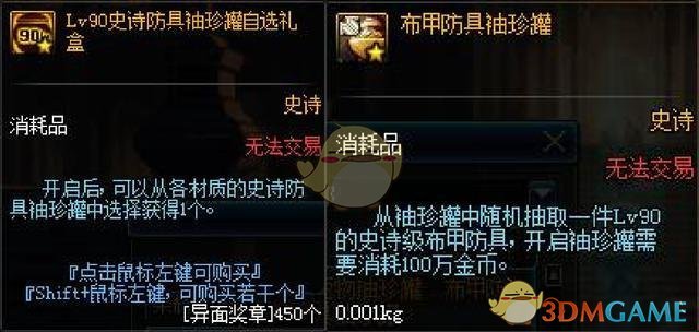 使用450个异面奖章兑换这个礼盒后,我们可以根据需要选择不同材质的史诗防具袖珍罐,比如布甲防具。打开袖珍罐需要花费100万金币,但是大家注意了,这个罐子是随机开出来的,也就是可以开启90史诗布甲5个部位共10件中的任意一件,包括散件和套装,意味着你肝了一个月换到的袖珍罐,还不一定能开出你正好缺的哪一件史诗散件,至于直接开出套装的几率非常低,太容易毕业,玩家就没有追求了,所以策划真是为了玩家操碎心啊(呵呵哒)