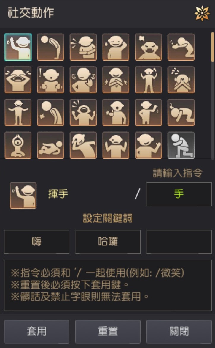 点击“S”按钮后,你会看到琳琅满目的社交动作列表。想立刻使用某个动作? 简单粗暴,右键点击它! 你的角色就会立刻开始表演! 更酷的是,你还可以给这些动作设置快捷指令或者关键词,以后只要在聊天框里输入,就能一键触发,简直不要太方便!