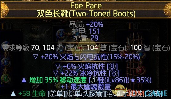 手套:黄装加投射物伤害基底,可用化石点出高生命、召唤伤加攻速即可(可附魔)。