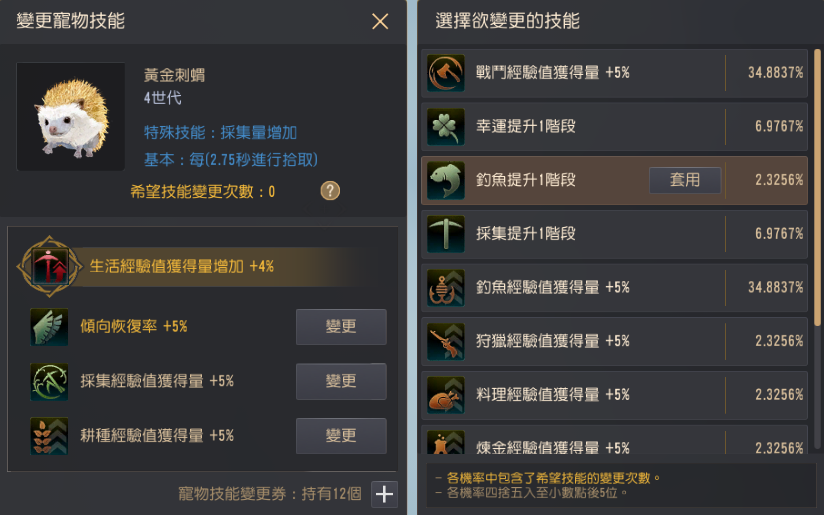 - 如果你心仪的技能出现了,那就毫不犹豫地按下[套用]键!注意,这会消耗一张珍贵的“宠物技能变更券”。接下来,就听天由命吧!