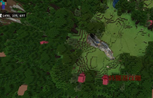 在坐标592.90.466,我们发现了另一个僵尸村庄。这个村庄更惨,直接被两条峡谷劈成了两半。看来这个版本对僵尸村庄是真爱啊,数量多到让人怀疑人生。