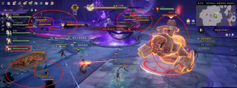 4. 烈火烹油: 孟婆进入无敌模式,门口刷木偶人,其他三个方向刷小纸人。先别管木偶人,DPS火力全开,顺时针清理纸人! 可以安排一个DPS专门负责3号点的清理工作。