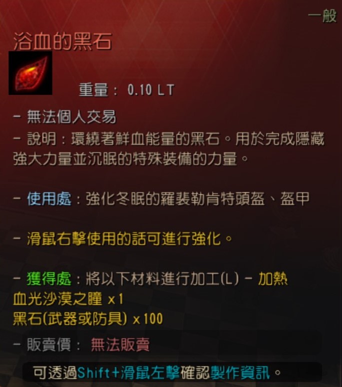 - 强化的时候,需要用到一种叫做“浴血的黑石”的玩意儿。