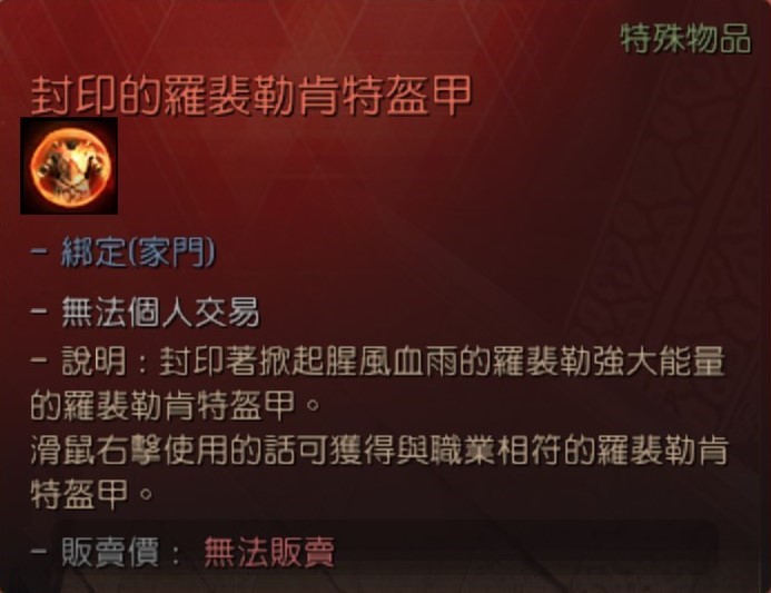 - 使用“封印的罗裴勒肯特盔甲”,你就能获得和你角色职业对应的罗裴勒肯特盔甲啦!