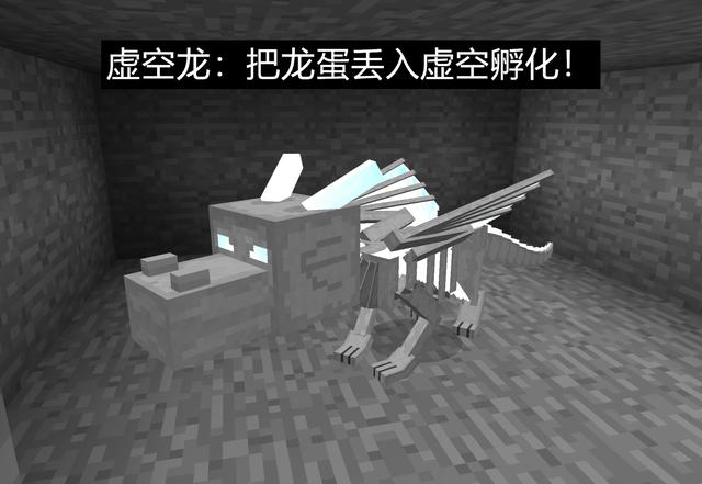 直接把龙蛋丢进虚空里!利用虚空的力量,让它自然孵化!啥也不用做,耐心等待49个MC日,孵出来的龙就叫“虚空龙”(又名骨龙、鬼龙),通体白色,帅到没朋友!小虚空龙孵化后会直接传送到你身边,简直是霸道总裁爱上我的剧情!