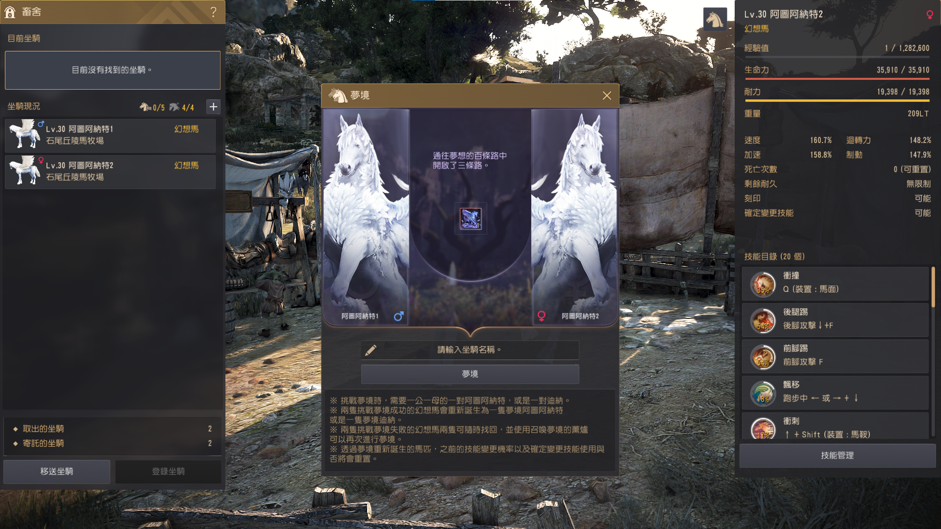 2. 选中寄养在马厩里的幻想马,然后勇敢地点击“梦境”按钮!