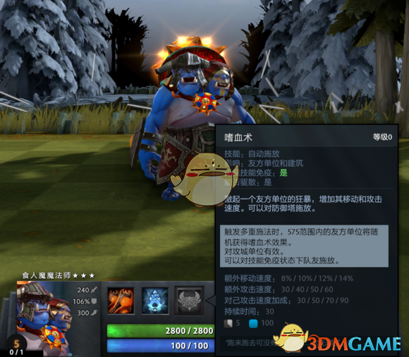 技能: 嗜血术 - 给我方单位加攻速,自己也蹭点,持续时间超长!