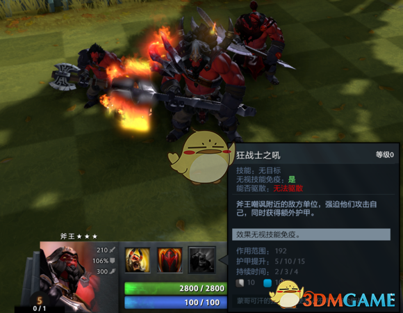 技能: 狂战士之吼 - 嘲讽周围敌人,强制攻击自己,还加护甲!