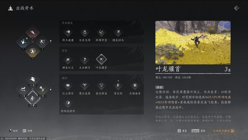 还有很多对战斗有很大帮助的奇术,比如“叶龙镶首”,能造成高额伤害,还能躲避敌人技能。但消耗也很大,一招就能抽空你的精元。