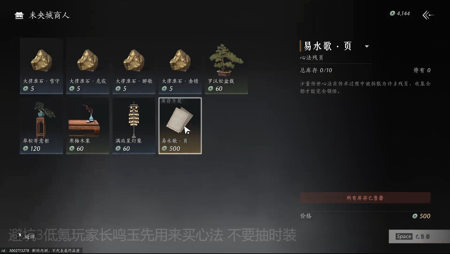 2. 刷满么玉并在不肝商城购物(优先买振玉和心法)。