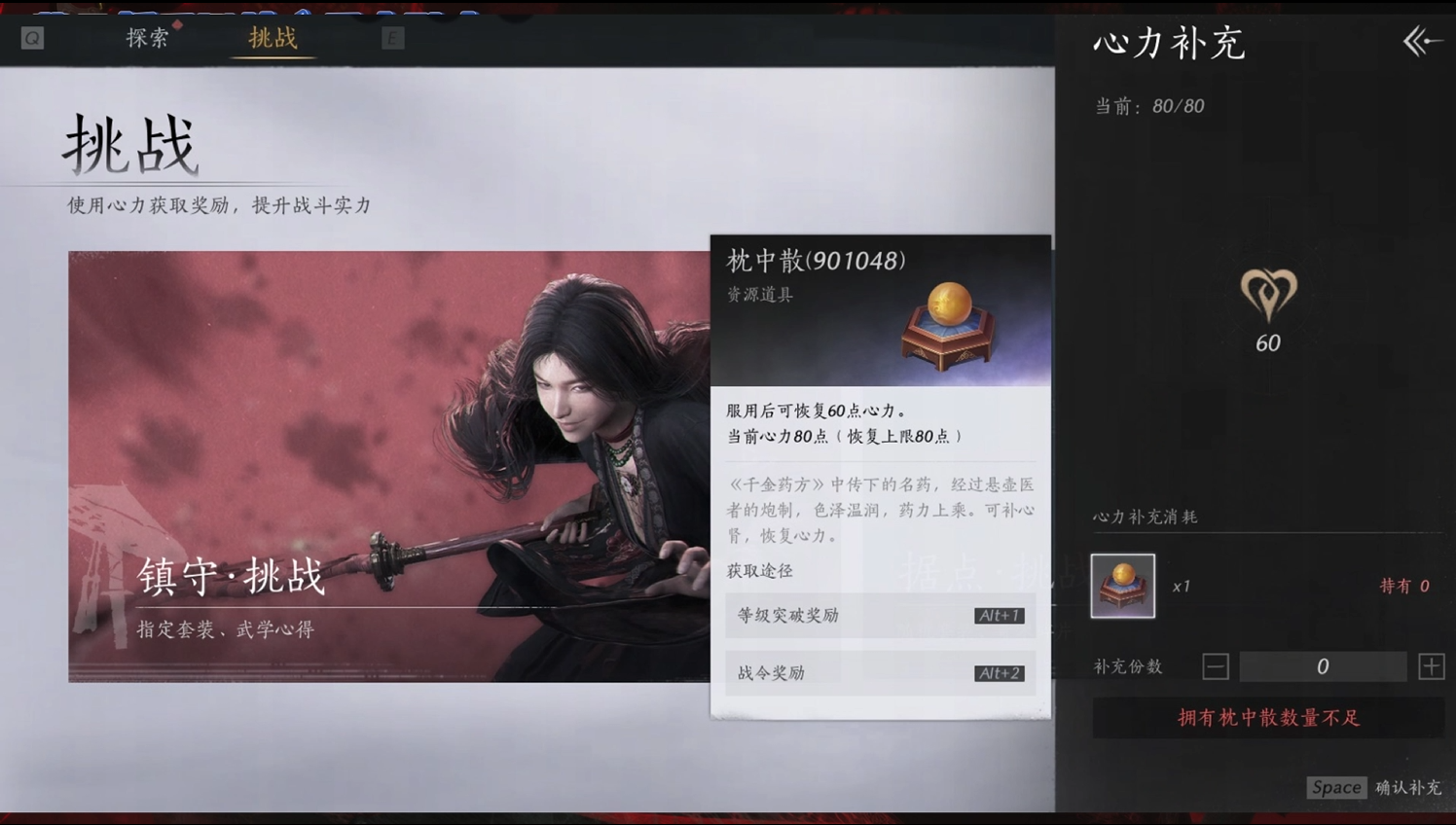 枕中散(体力药)不建议过早使用,留着关键时刻救命!