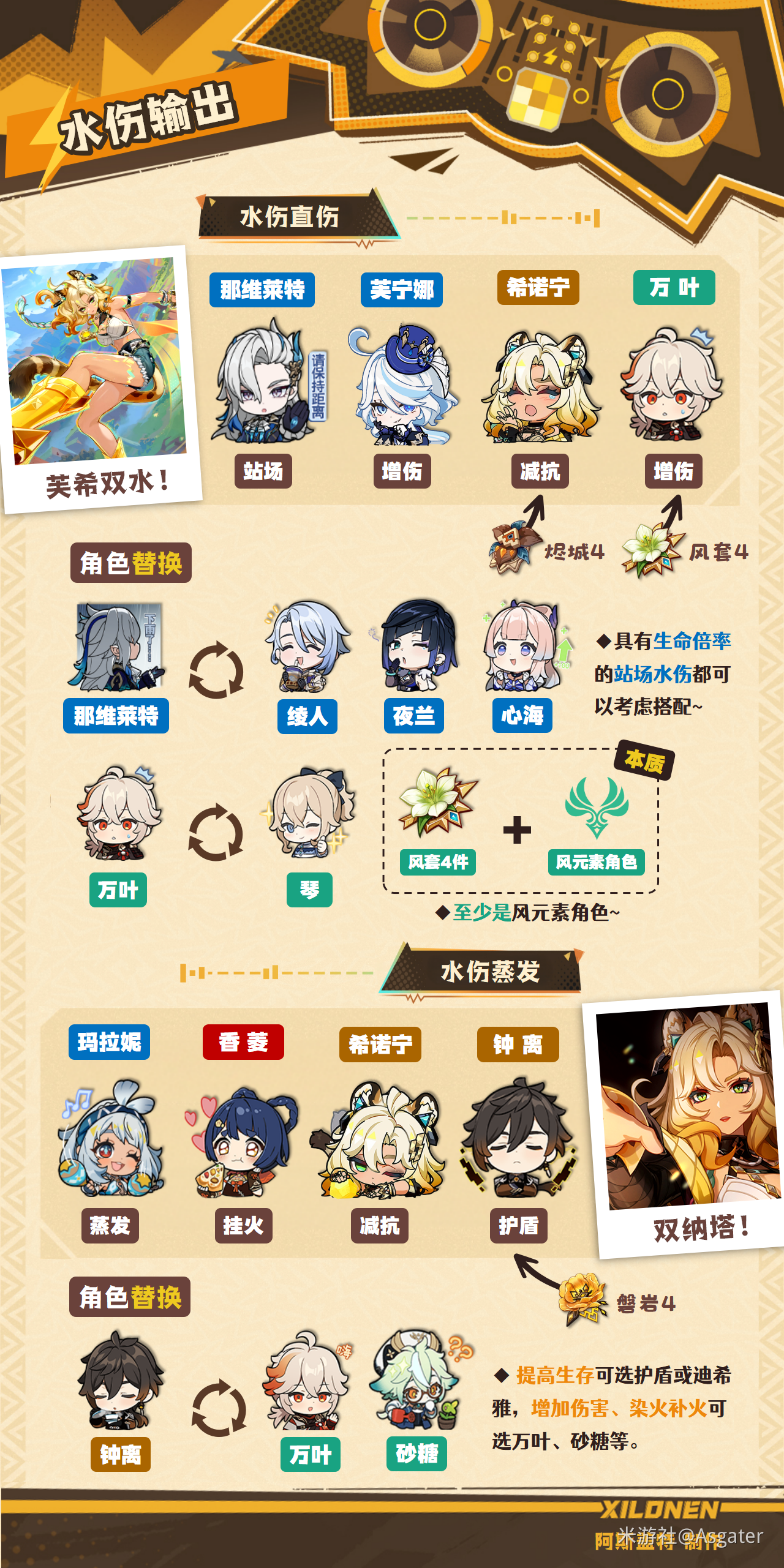 ③ 有芙宁娜优先芙宁娜,没有芙宁娜可换为夜兰、菲谢尔等副C。