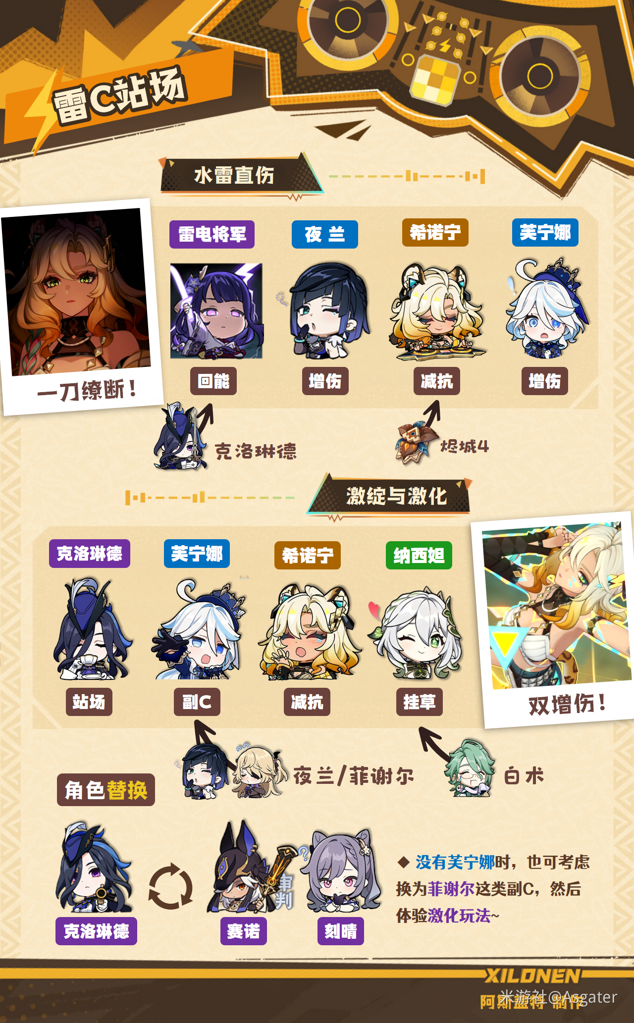 ① 夜兰可暂用行秋,也可替换为芙宁娜。