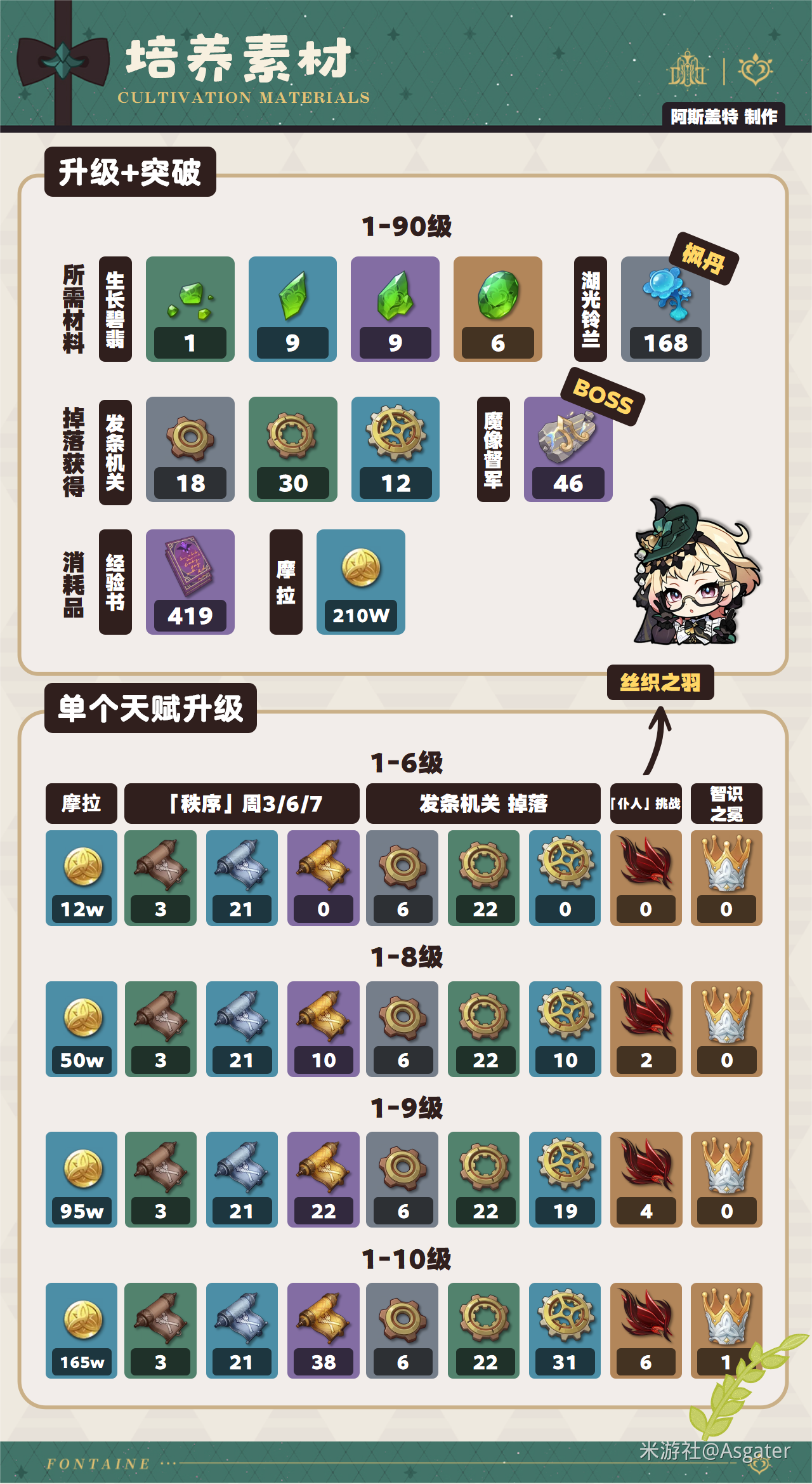 ① 芙宁娜在这套阵容里的培养思路,可以参考“可芙万班”——0命可以少堆/不堆充能,专注于提高战技伤害。