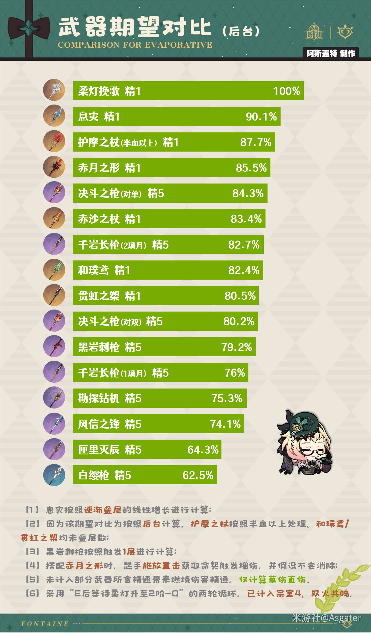 ◆ 这套玩法更多是一种拓展思路——燃烧可以增加水C触发蒸发的次数,“调香师”的加入可以优化队伍的挂草“转火能力”。这套阵容的那维莱特还是以水元素伤害为主,蒸发只是“锦上添花”。