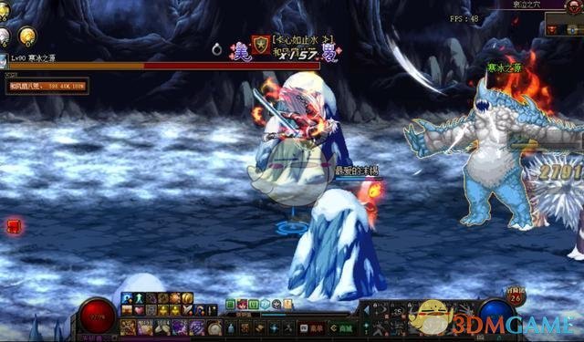 哀泣之穴难度略高一些,但是一样非常轻松简单,只需要一身远古传说就能通关,我们再第一个房间需要触碰火堆,这样身边会环绕火焰,不过这个火堆的位置基本上是百分百会碰到的。整个地图除了绿名怪寒冰之源攻击伤害比较高外,房间二有一个石像会召唤冰柱攻击,需要先打掉。