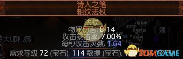 武器:天雷之珠+闪电穿透+投射物减速(配合欧克药水加元素穿透羽毛笔,电穿可达到89%) 电弧+附加闪电伤+终结速刷的话还可以准备一支闪电传送+急速腐化+持续时间缩短