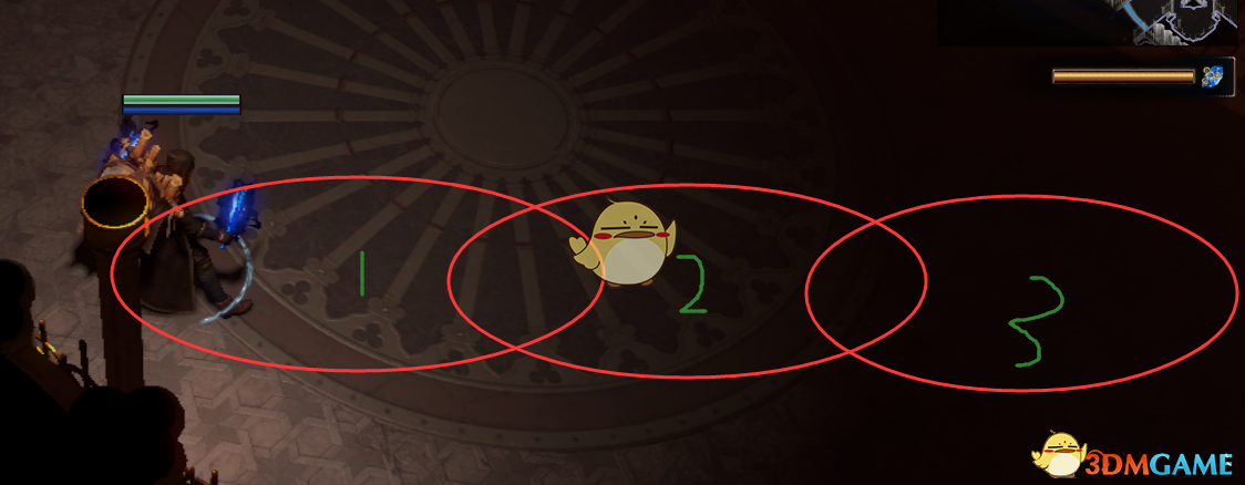 这是70范围带集中效应的示意图重叠的范围非常小但是还是能打出两次爆炸重叠的。