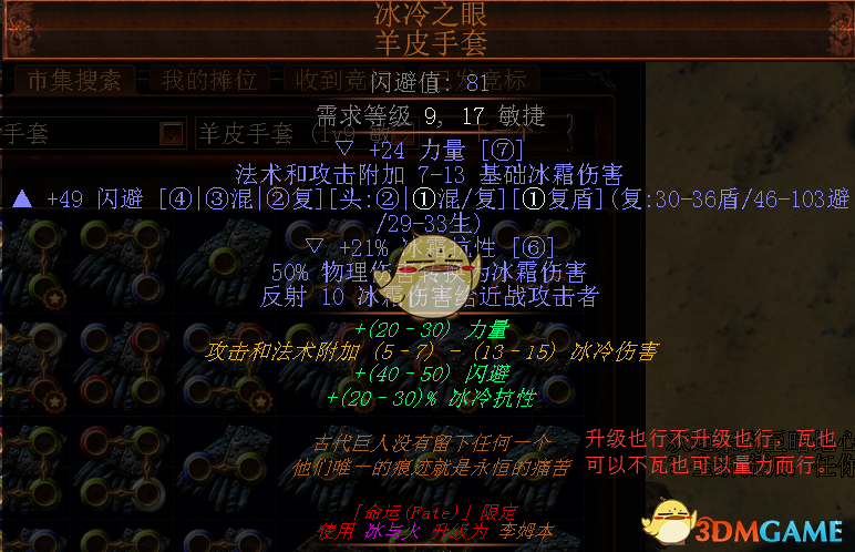黄手套用塑界底子的丝绸手套,有上缀法术伤害和塑界词缀施法速度。