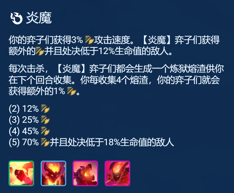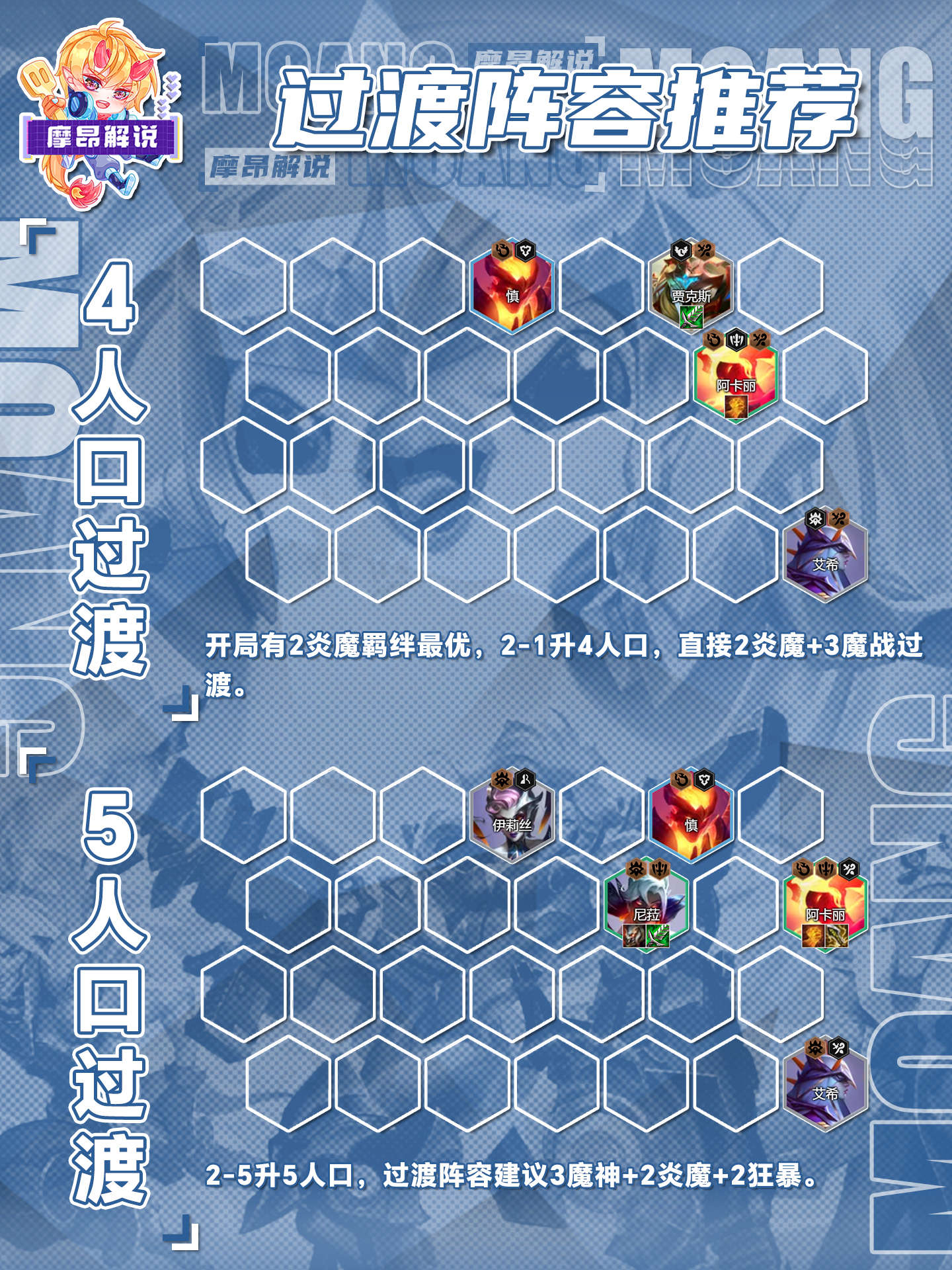2-5:升5人口,过渡阵容推荐3魔神+2炎魔+2狂暴。