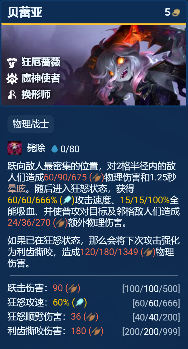 狂暴战士羁绊,让阿卡丽拥有10%的全能吸血,增强续航能力。同时,2狂暴羁绊还能提供10%的额外增伤,让阿卡丽和尼菈的输出更上一层楼!