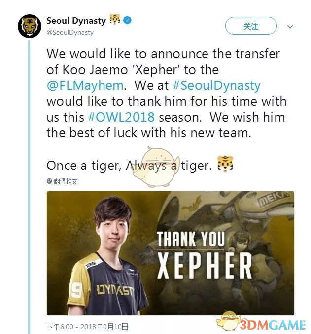 2018年9月10日,首尔王朝队官方推特宣布队内副T选手Koo“xepheR”Jae-mo转会至佛罗里达狂欢队。