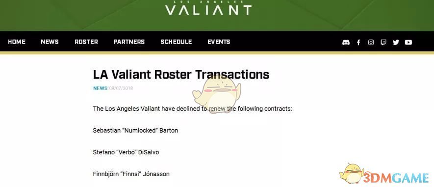 2018年9月7日,洛杉矶英勇队官方网站宣布与辅助选手Stefano“Verbo”Disalvo、主T选手Seb“numlocked”Barton、自由人选手Finnbjörn“Finnsi”Jónasson解约。