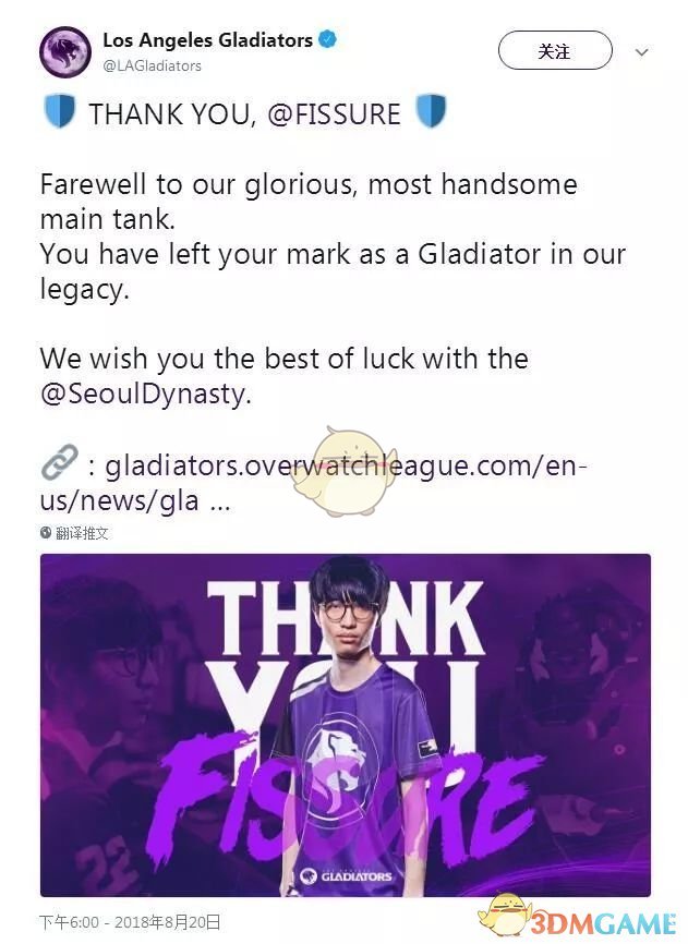 2018年8月20日,洛杉矶角斗士队将主T选手Baek“Fissure”Chan-hyung转会至首尔王朝队。
