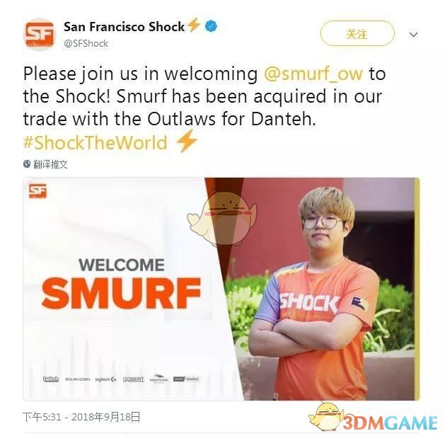 2018年9月18日,旧金山震动队官方推特宣布,原休斯敦学院队主T选手 Yoo“smurf”Myeong-hwan加入旧金山震动队。